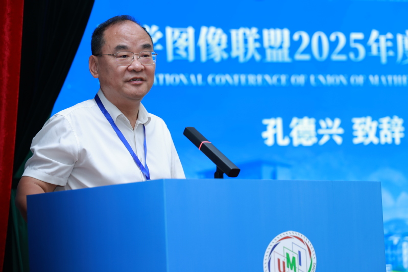 数学图像联盟发起人、中国工业与应用数学学会数学与医学交叉学科专业委员会主任委员孔德兴教授回顾了数学图像联盟的发展历程与创立宗旨,进一步阐述了数学与图像交叉融合在多个应用领域中的关键作用,同时寄语在场学者既要立足实际开展应用研究,也要注重培养“情商、智商、乐商”,实现全面成长。