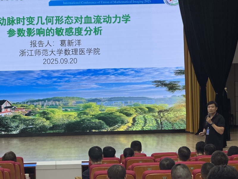 副院长黄守军作了题为《Active Contour Models Driven by Hyperbolic MeanCurvature Flow for Image Segmentation》的报告。葛新洋老师作了题为《冠脉时变几何形态对血流动力学参数的影响研究》的报告。张建峰老师参与并主持了《加速的主对偶不动点算法》报告。