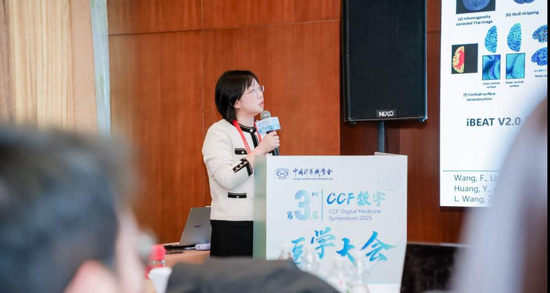 华南理工大学张鑫副教授作了题为《新生儿颅脑磁共振影像的智能分析》的报告。该报告涵盖脑皮层三维重建、纵向发育建模及多图模型驱动的脑功能分析,有助于推动早期脑发育研究方法革新。