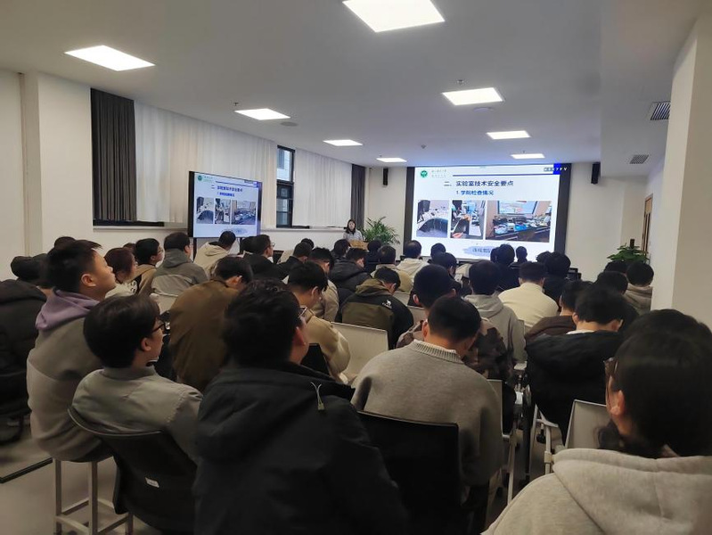 实验室管理办公室杨朝凤老师结合国内外实验室典型安全事故案例、校内违规操作案例,以及学院近期实验室安全专项检查情况,开展了深刻的安全警示教育。她详细讲解了实验室技术安全核心要点、用电安全规范、消防安全操作流程,解读了学校实验室安全责任追究办法,并系统介绍了实验室与研习室的准入标准、申请流程及注意事项,从源头严把安全准入关,确保师生规范进入、安全使用。