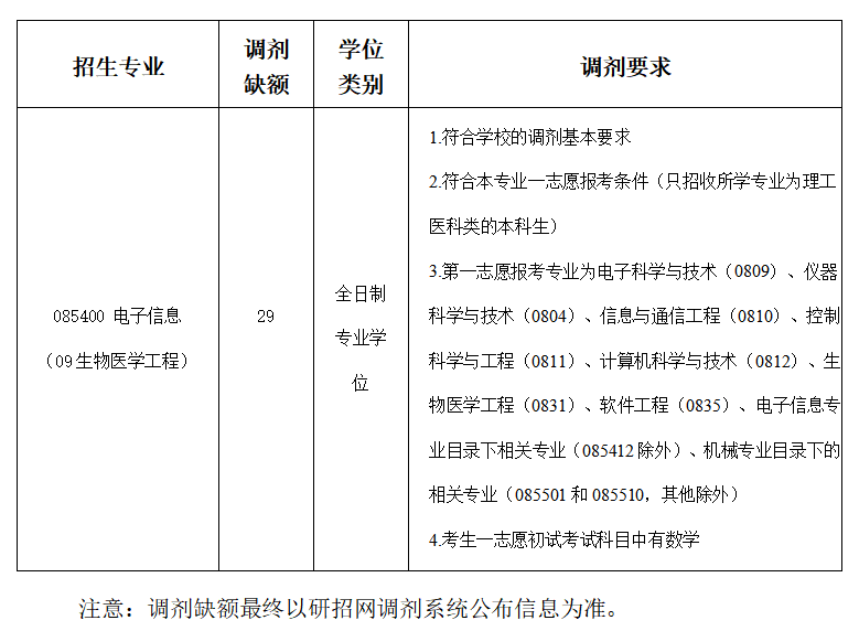 1.学院根据专业需求及复试录取实际情况,经研究生院审核后,通过“全国硕士生招生调剂服务系统”及时发布调剂缺额、调剂要求等信息。